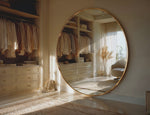 The Solaro Round Mirror is the epitome of modern elegance, featuring a sleek brushed gold aluminum frame that exudes sophistication and timeless style. Designed to enhance any space, this mirror is perfect for adding light, depth, and a luxurious touch to living rooms, bedrooms, hallways, or bathrooms. The brushed finish on the aluminum frame offers a subtle texture, reflecting a warm golden hue that complements a wide range of interior styles, from contemporary to classic.