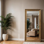 Step into timeless luxury with the Aurora Gilded Mirror – a stunning full-length mirror featuring an ornate gold frame that radiates classical elegance. Its hand-carved leaf and scrollwork motifs are highlighted by a beautifully aged finish, creating a luxurious yet warm presence in any room.